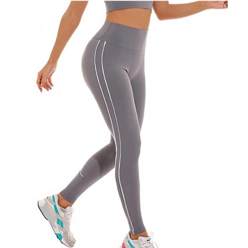 Grey Workout Leggings for Women Yoga Pants Leggings Stripes on Side, Tummy Control High Waisted