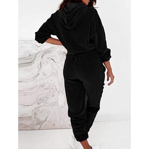 - Women velvet hoodies loungewear sets, long jogger pants with elastic drawstring waist
