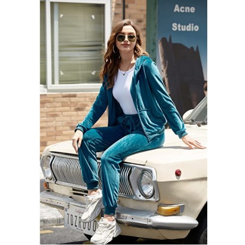 2 Piece Sweatsuits Women Long Sleeve Hoodie Sets Zipper Soft Tracksuit Loose Sweatshirts Velour Jogger with Pockets